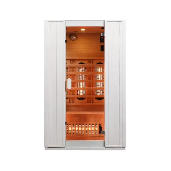 Внутренняя часть кабины изготовлена из древесины болиголова, которая обеспечивает высокую стабильность, устойчивость к деформации, слабый запах и естественную красивую текстуру дерева, что делает ее особенно подходящей для длительного использования сауны. Общий дизайн представляет собой отдельно стоящую двухместную кабину с высокой эффективностью использования пространства, идеально подходящую для создания специальной зоны оздоровления или восстановления как в жилых, так и в коммерческих помещениях.