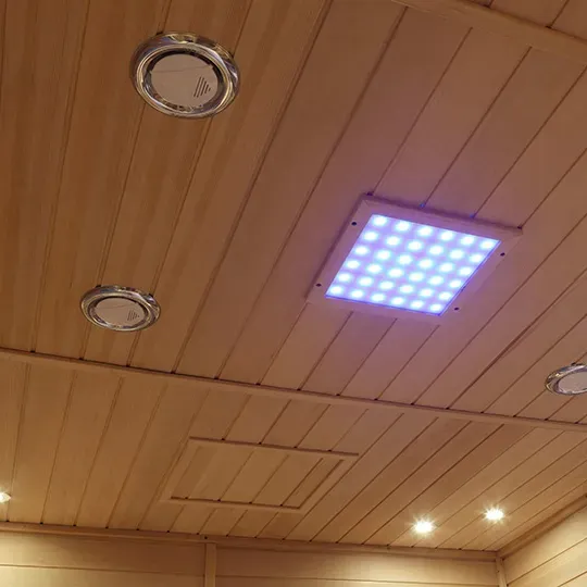 3. Опыт обогрева и освещения: равномерно распределенные инфракрасные нагревательные панели обеспечивают мягкое, проникающее тепло; верхнее и боковое освещение (теплых тонов) способствует расслаблению и позволяет избежать духоты и угнетения