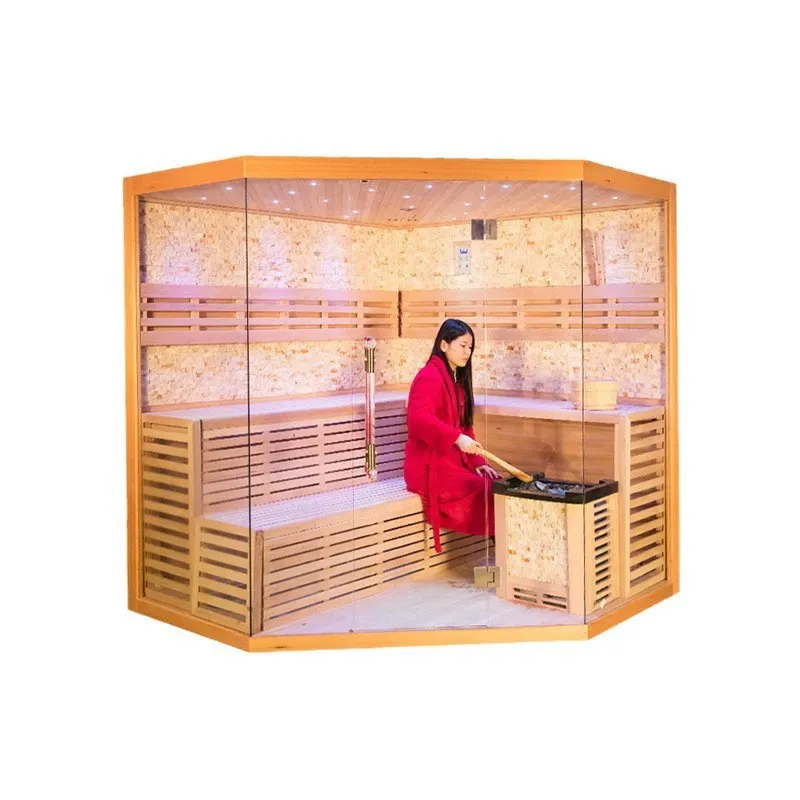 Эта сауна Hemlock с трехсторонней стеклянной интеллектуальной системой управления сочетает в себе высококачественные материалы, прозрачный дизайн, интеллектуальное управление и гарантии безопасности, а также тщательное мастерство от основных компонентов до мелких аксессуаров. Независимо от того, используется ли оно в качестве частного места для отдыха дома для профессиональной сауны в условиях плотного графика или в коммерческих помещениях, таких как отели, СПА-клубы и фитнес-центры, для предоставления высококачественных услуг, оно идеально отвечает разнообразным потребностям, создавая для вас комфортную, здоровую и профессиональную сауну.